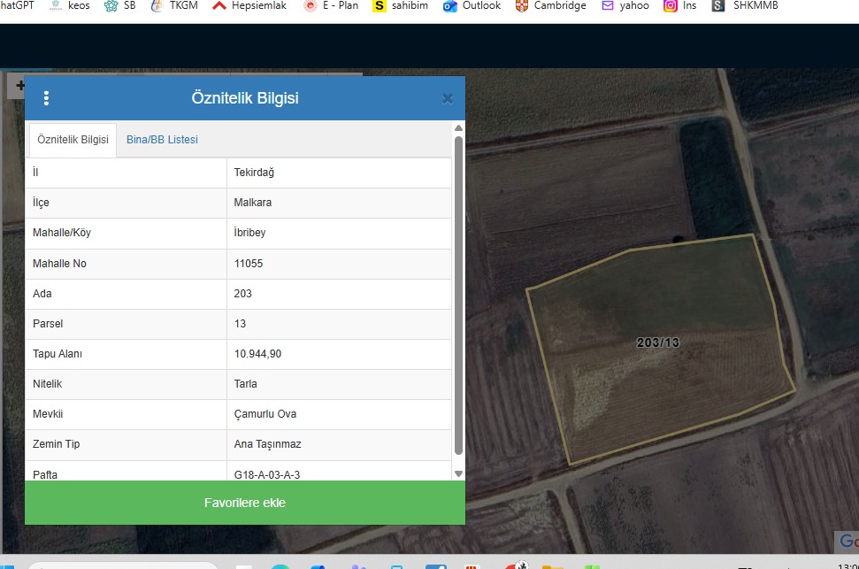 Tekirdağ Malkara İbribey Mahallesi’nde bulunan 203/13 parsel, toplam 10.945 m² büyüklüğünde tarla satışa sunulmuştur.